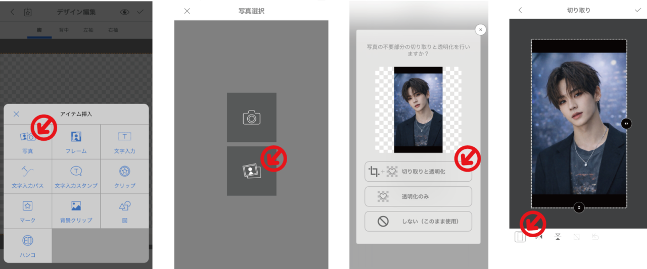 ③写真選択後、一番上の【切り抜きと透明化】をタップ