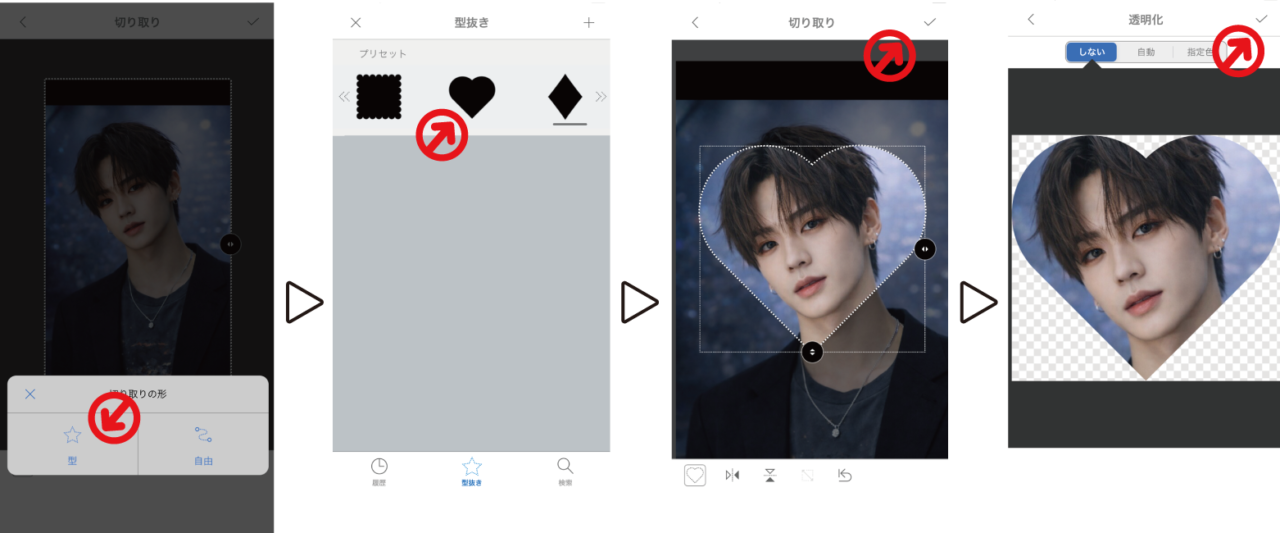 ⑤切り取って右上のチェックマークをタップ(透明化はしないで大丈夫です)